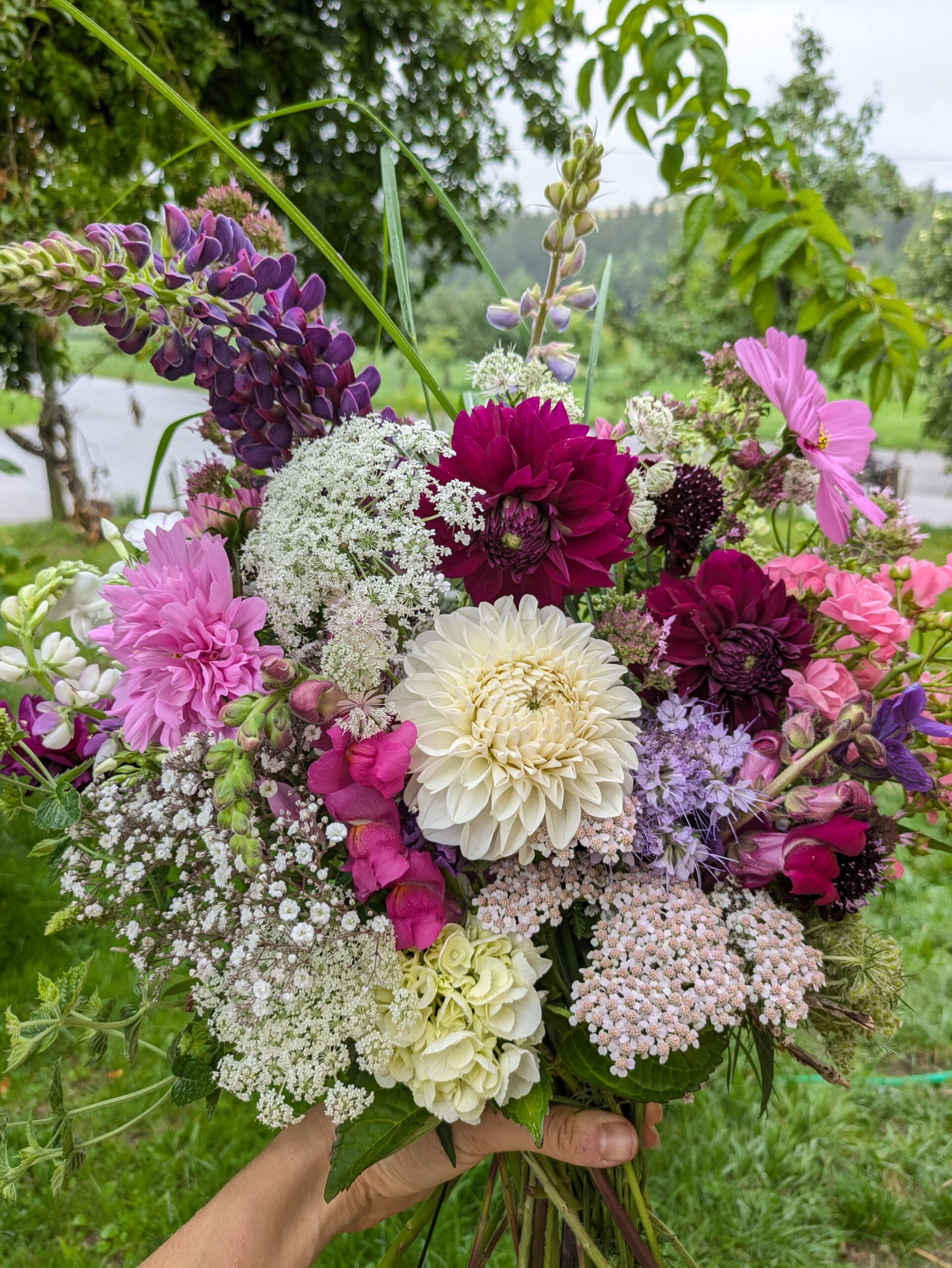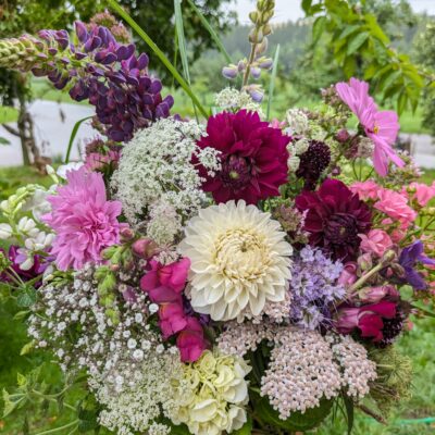 Deine Hochzeitsblumen wachsen direkt auf meinem Feld, nachhaltig und mit viel Liebe großgezogen. Vom Brautstrauß über den Kirchenschmuck bis hin zur Tischdekoration – jedes Arrangement wird auf dein Farbkonzept abgestimmt und mit den Blumen gestaltet, die gerade Saison haben. Freu dich auf ein Erstgespräch zur Ideenfindung, eine ausführliche Beratung und die Möglichkeit, Vasen für deine Dekoration auszuleihen.